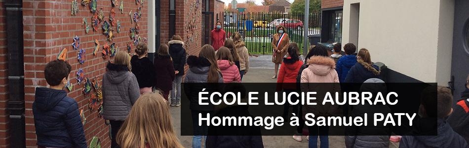Sous le préau de l’école primaire Lucie AUBRAC, les enfants de la classe CM2, en présence de Marie Claude FICHELLE, première adjointe, ont respecté une minute de silence en hommage à Samuel Paty.