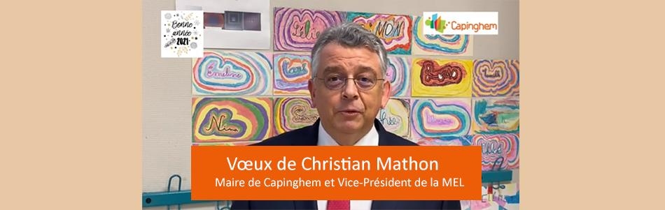 Christian Mathon, maire de Capinghem, et vice-président de la MEL, vous souhaite une excellente année 2021 en vidéo, que vous pouvez également consulter sur la page YouTube de Capinghem à l'adresse https://www.youtube.com/watch?v=S45Dr_JWhho