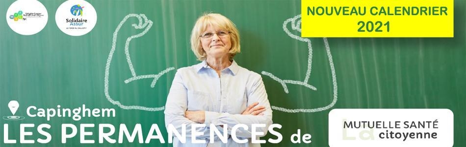 Retrouvez ci-dessous le calendrier 2021 des permanences de Solidaire Assur, de 14h à 16h (en mairie de Capinghem, 58 bis rue Poincaré, ou à l'Espace Masselot, 14 avenue Nelson Mandela).