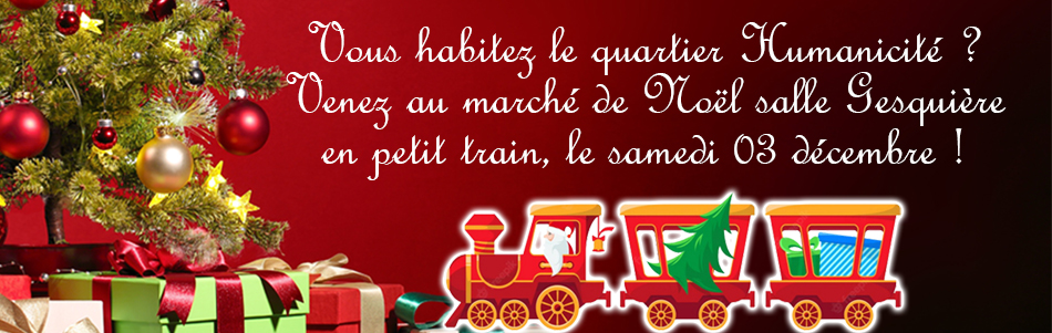 Venez donc au Marché de Noël des Associations et créateurs le samedi 03 décembre, salle Gesquière, grâce au petit train du Père Noël !