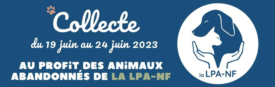 La LPA-NF (Ligue Protectrice des Animaux du Nord de la France) organise une collecte au profit des animaux abandonnés à Capinghem, du 19 au 24 juin 2023 :