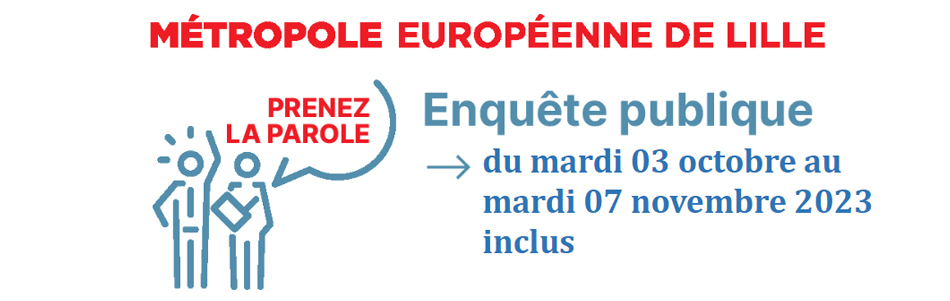 Le public est informé que, par arrêté, Monsieur le Président de la Métropole Européenne de Lille (MEL) a prescrit une enquête publique portant sur le projet de révision du Plan Local d’Urbanisme de la MEL.