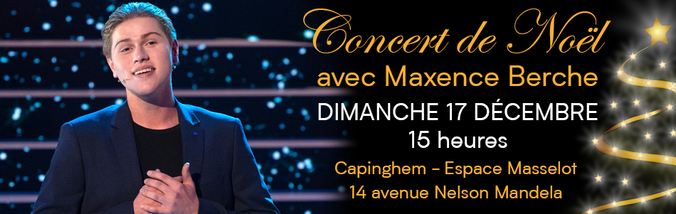 Chanteur dans l'association capinghemmoise "Voix des Hauts-de-France", Maxence BERCHE, finaliste de l’émission Prodiges diffusée le 30 décembre 2021 sur France 2, donnera un concert de Noël gratuit à l’Espace Masselot le dimanche 17 décembre 2023 à 15h (ouverture des portes à 14h30).
