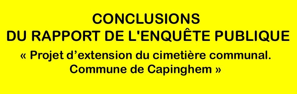 Pour donner suite à l’enquête publique de l'extension du cimetière communal de Capinghem qui s'est tenue du lundi 06 novembre 2023 au vendredi 08 decembre 2023, veuillez télécharger ci-dessous au format PDF les éléments du Commissaire Enquêteur Monsieur Georges ROOS :