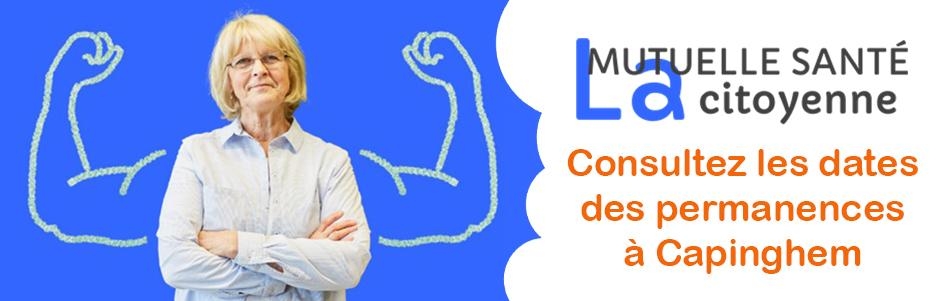 La Mutuelle Santé Citoyenne se déplace à Capinghem avec l’appui de la mairie et du CCAS, et vous propose des permanences à l'Hôtel de Ville (58 bis rue Poincaré) tous les deuxièmes mardis du mois de 14h à 16h15 et à l'Espace Masselot (14 avenue Nelson Mandela) sur rendez-vous au 03 20 55 97 01.