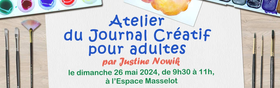 C'est ce que propose Justine NOWIK avec l'atelier gratuit (pour adultes) du Journal Créatif le dimanche 26 mai 2024, de 9h30 à 11h, à l’Espace Masselot, 14 avenue Nelson Mandela.