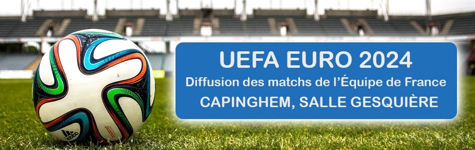 Le Championnat d'Europe de l'UEFA de football 2024 se déroulera du 14 juin au 14 juillet 2024. La commune de Capinghem vous fera partager ce grand moment en retransmettant les matchs de l'équipe de France sur grand écran, salle Gesquière (rue d'Ennetières), avec le concours de l’Association Sportive de Capinghem (vente de sandwichs et buvette).