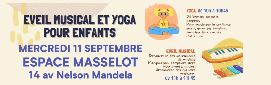 Marie-Charlotte, auxiliaire de puériculture, propose des ateliers gratuits d'éveil musical et de yoga pour les enfants le mercredi 11 septembre 2024 à l'Espace Masselot.