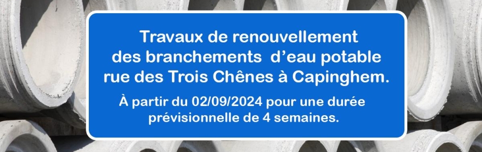 La société Iléo vous informe que des travaux de renouvellement des branchements d’eau potable pour la rue des Trois Chênes à Capinghem.