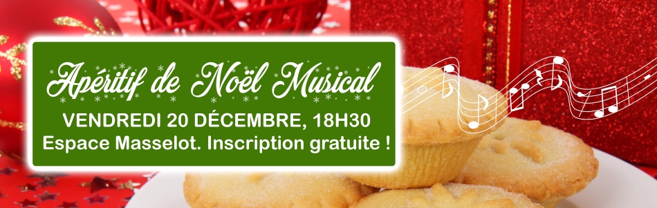 Le vendredi 20 décembre 2024 à 18h30, à l’Espace Masselot (14 avenue Nelson Mandela), venez retrouver Cédric et Virginie qui animeront un apéritif de Noël musical !