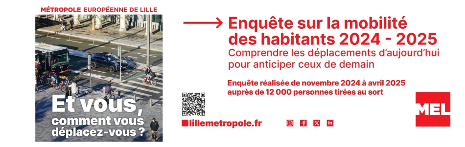 À partir du 13 novembre 2024 et jusqu'au 30 avril 2025, la Métropole Européenne de Lille organise une grande enquête sur les habitudes de déplacements des métropolitains.