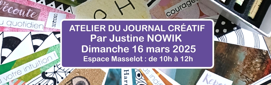 C'est ce que propose Justine NOWIK avec l'atelier gratuit (pour adultes) du Journal Créatif le dimanche 16 mars 2025, de 10h à 12h, à l’Espace Masselot, 14 avenue Nelson Mandela.