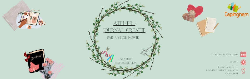 C'est ce que propose Justine NOWIK avec l'atelier gratuit (pour adultes) du Journal Créatif le dimanche 27 avril 2025, de 10h à 12h, à l’Espace Masselot, 14 avenue Nelson Mandela.
