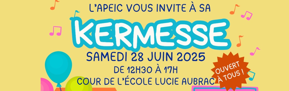 L'Association des Parents d'Elèves Indépendante de Capinghem vous invite à sa Grande Kermesse le samedi 28 juin 2025, de 12h30 à 17h, dans la Cour de l’école Lucie Aubrac, pour une après-midi festive, familiale et ouverte à tous !