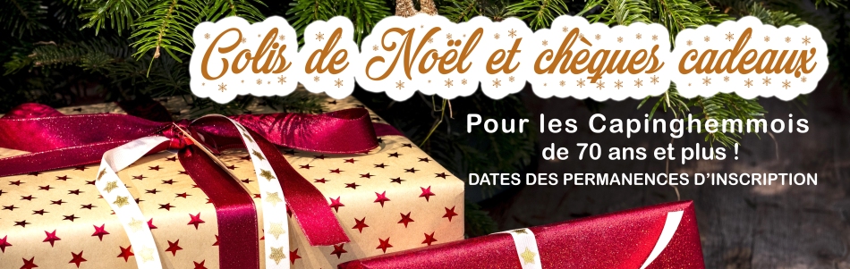 À l’occasion des fêtes de fin d’année, le CCAS est heureux d’offrir aux Capinghemmois de 70 ans et plus un colis de Noël (un colis par foyer).