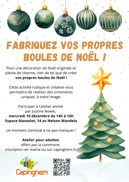 Participez à l’atelier animé par Justine Nowik, mercredi 10 décembre de 14h à 16h (Espace Masselot, 14 av Nelson Mandela, Capinghem).