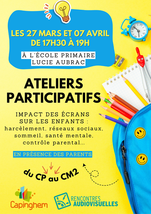 La mairie de capinghem vous propose pour la deuxième année et dans le cadre de la lutte contre le harcèlement deux ateliers sur l'impact des écrans sur les enfants et la présentation des réseaux sociaux.