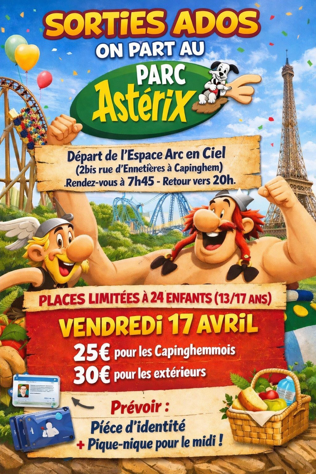 Le Service Enfance et Jeunesse organise une sortie Ados (pour les 13-17 ans) au Parc Astérix le vendredi 17 avril 2026.